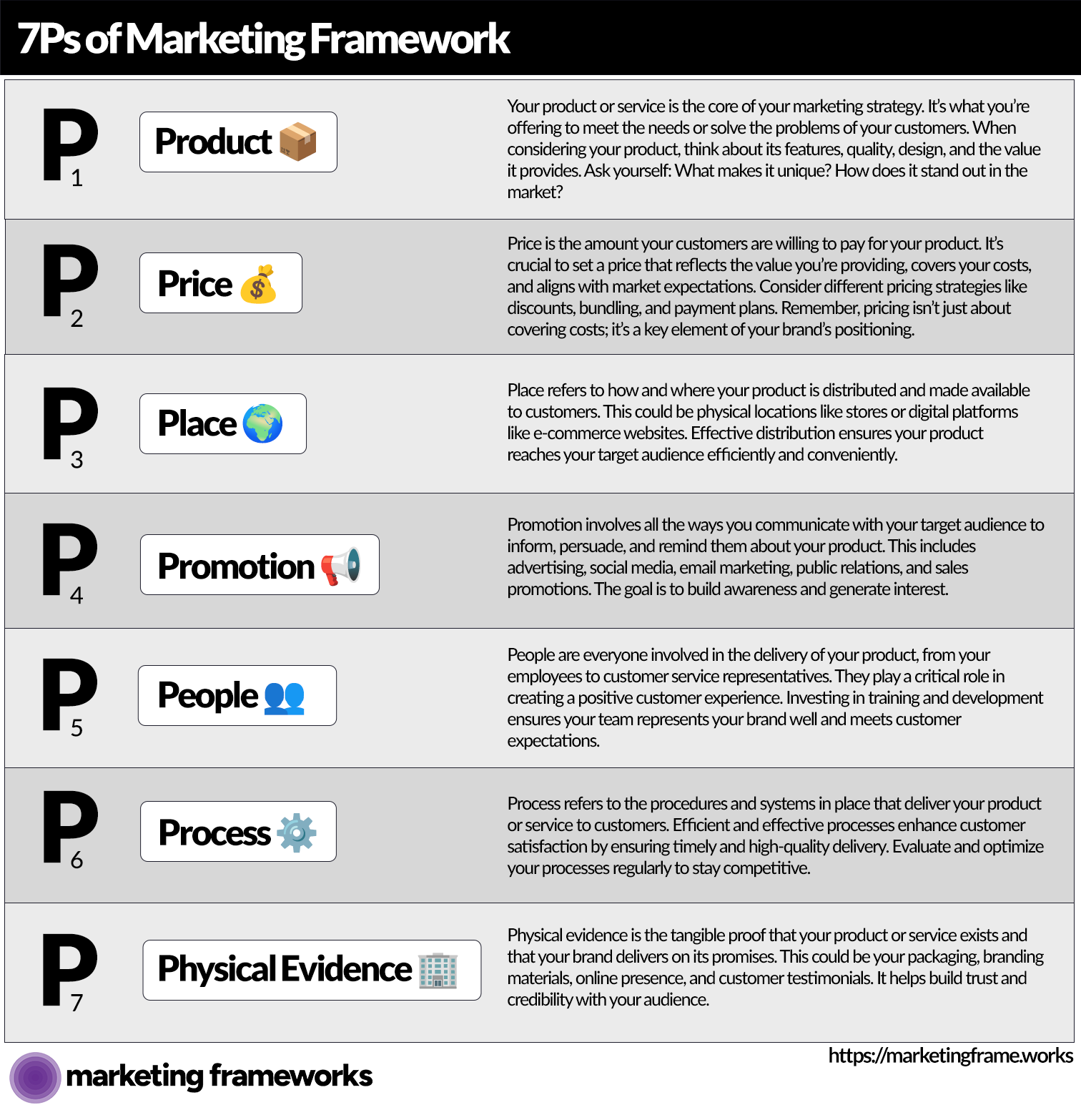 For more information on the 7Ps of Marketing Framework along with dozens of additional, powerful frameworks, check out the Marketing Frameworks app.